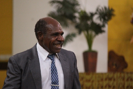 Ketua DPRD Mimika, Anton Bukaleng,S.Sos, M.Si dan Wakil Ketua II, Yohanis Felix Helyanan,SE saat menghadiri Rapat Paripurna DPRD Mimika untuk Mendengarkan